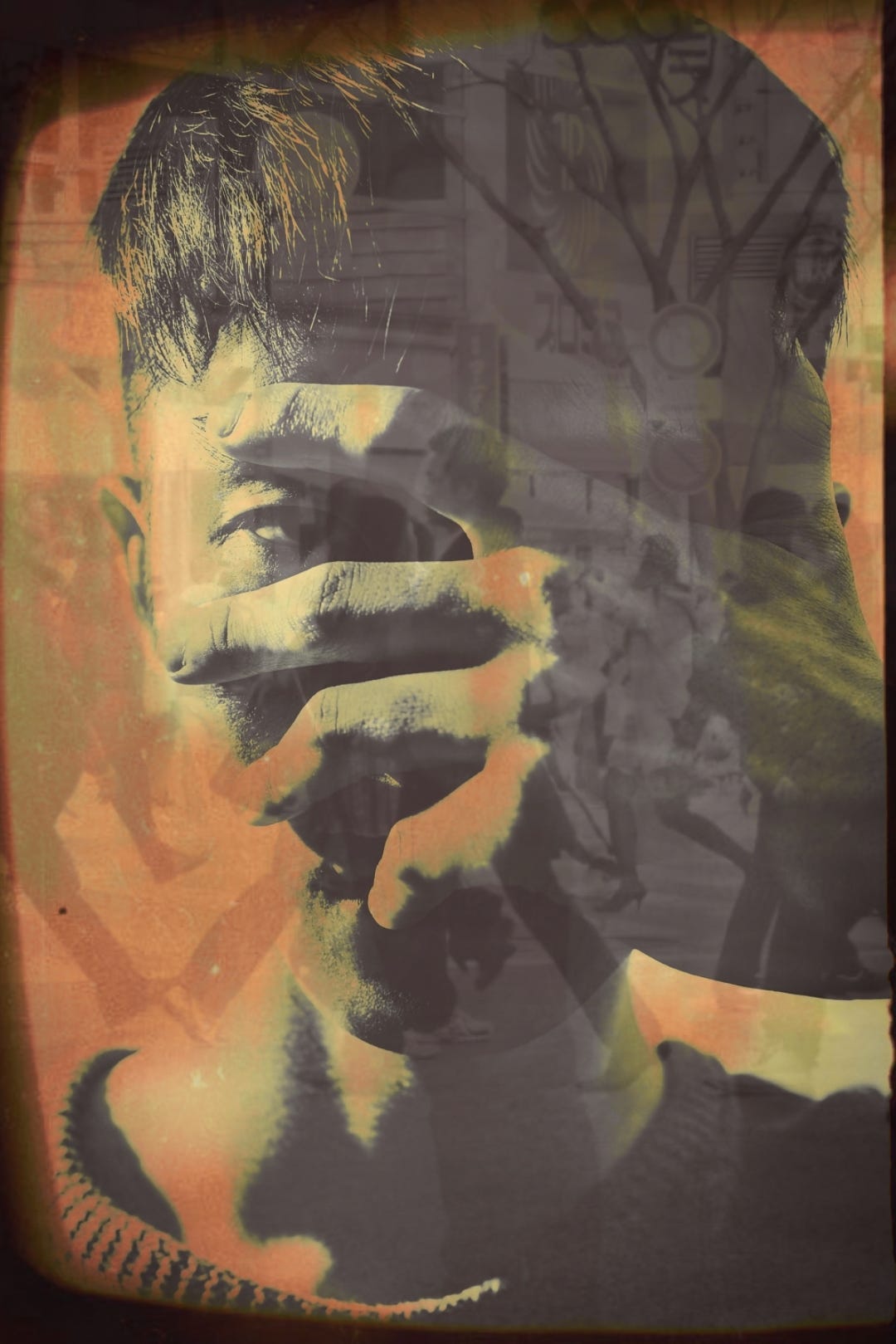 Black dye throbbed into my skin. Bandages cover my Eczema. Roasted under sunlight. Gray coveralls. Large pockets filled with tools. Sheltered from tomorrow. Gauze wrapped around my forearms, dusted with fresh soil. Leo Chan Chi-Yung takes his work gloves, wipes his forehead. Sweating blood. Nose to the grindstone, teeth clenched. His own canines have become animals.